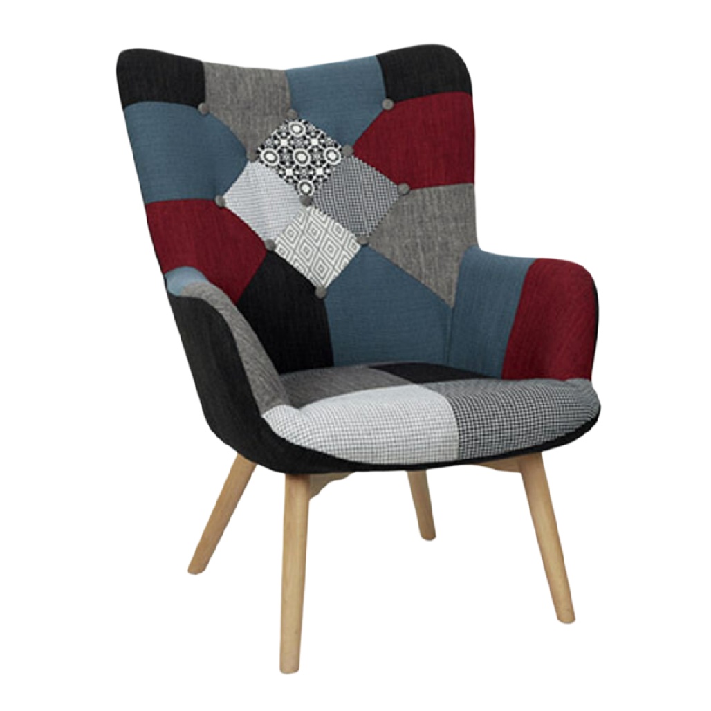 Fauteuil patchwork multicolore avec pieds en bois élégant
