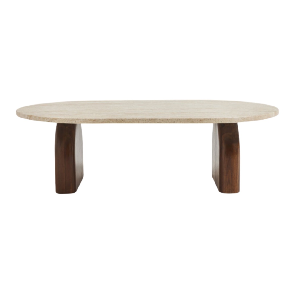 Table basse ovale en bois avec plateau en pierre naturelle